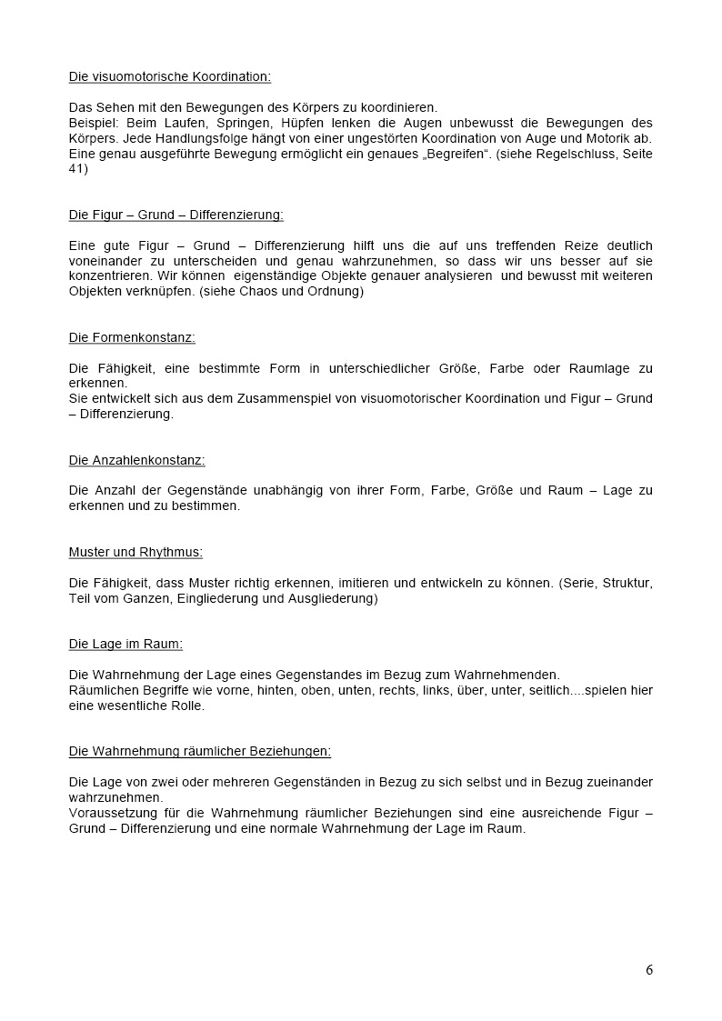 In diesen Erläuterungen zum Basis-Raumwahrnehmungstest 0, den Sie über den Verlag bestellen können, finden Sie eine Zusammenstellung der wesentlichen Wahrnehmungsfunktionen. Ebenfalls können Sie über die Hinweise zu den einzelnen Testpunkten den Aufbau des Testes kennenlernen.